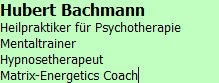 Home | Coaching-Übersicht | Coaching-Details | Seminar-Übersicht | Seminar-Details | Für Firmen | Methoden | Mentaltraining | Hypnose | Matrix Energie | Yuen-Methode | CHT | Harmonisierung des Nervensystems | Heilerlaubnis | Varianten/Preise | Häufig gestellte Fragen (FAQs) | Coaching ohne Geld | Unser Team | Bildergalerie | Wissenwertes | Berichte/Erfahrung | Kontakt/Newsletter | Anreise | Notfall | Impressum | AGB | Intern | Coaching per Skype | Mehr Themen: | Alternative Heilmethoden | Sitemap
